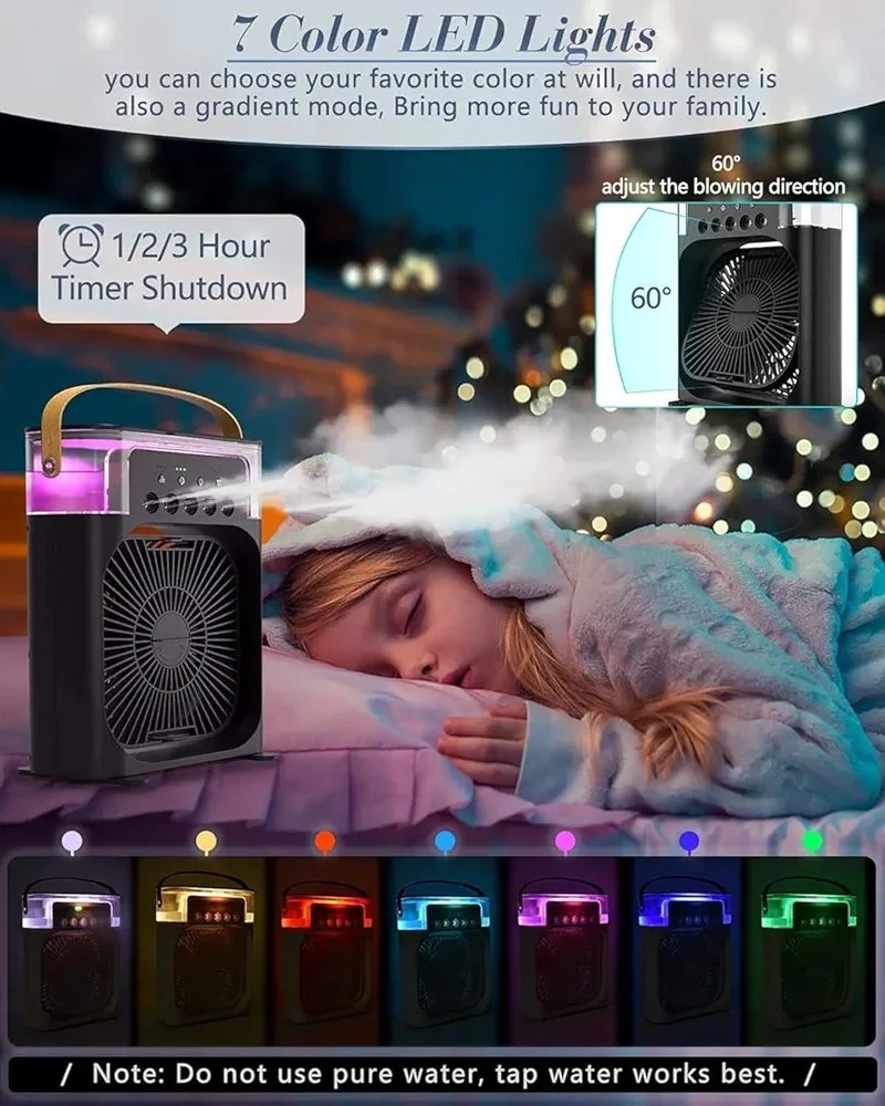 A USB Powered Mini Cooler Fan with Water is an excellent low-cost, low-power cooling solution for personal use, especially in hot climates or during summer. While it doesn’t replace a full air conditioner, it provides an eco-friendly, portable, and user-friendly way to stay cool and refreshed — whether at your desk, bedside, or on the go.